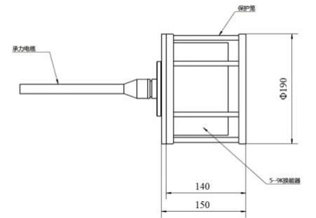 换能器预计尺寸: Ф190mm×150mm(不含连接器)